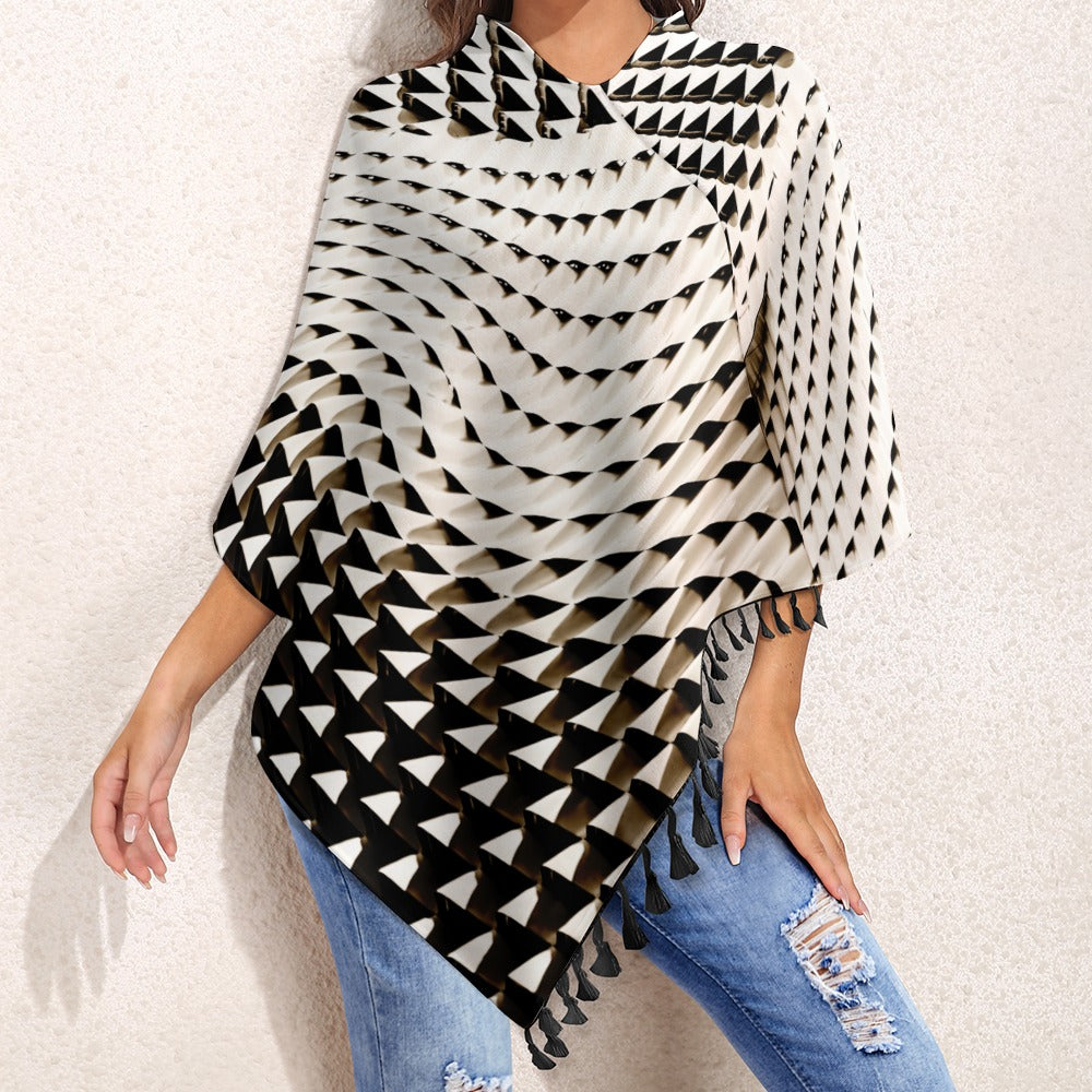 Knitted Cape With Fringed Edge Inkedjoy