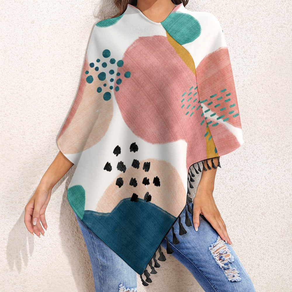 Unique cape with fringes! Our unique art cape is hand knitted with care and love. You will be breathless when you discover its soft texture and when you slide its fringes between your fingers. An item of clothing that will never go out of fashion!