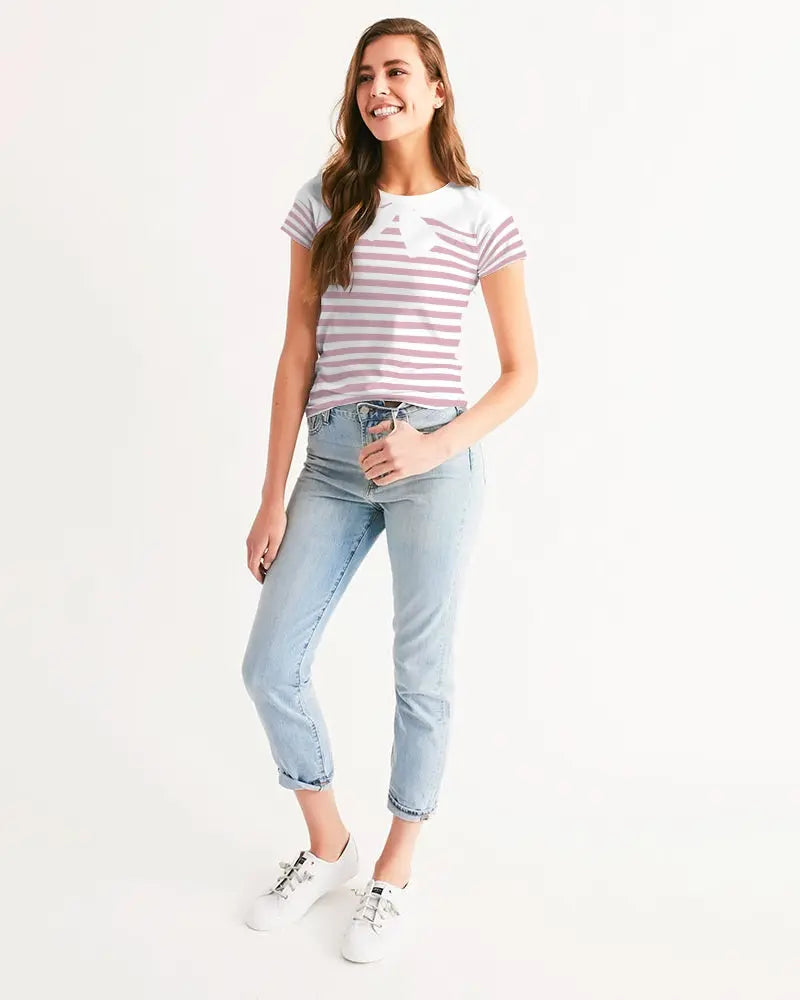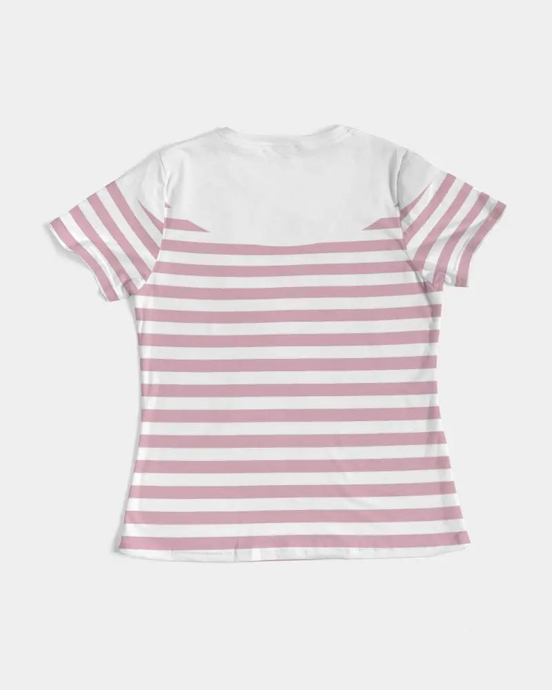 Pink Flowers T-shirt Motivi floreali su strisce rosa Dettagli del prodotto Esci con un classico istantaneo! La nostra t-shirt da donna aderente offre comfort e stile completi. Realizzato a mano con tessuto resistente e di qualità mostra tutte le tue curve con questa maglietta accuratamente realizzata. Tessuto morbido e traspirante Montato