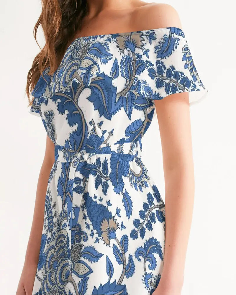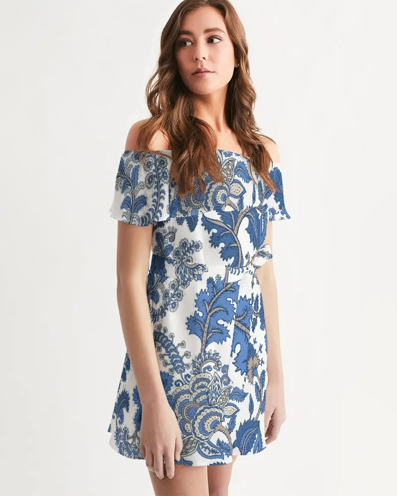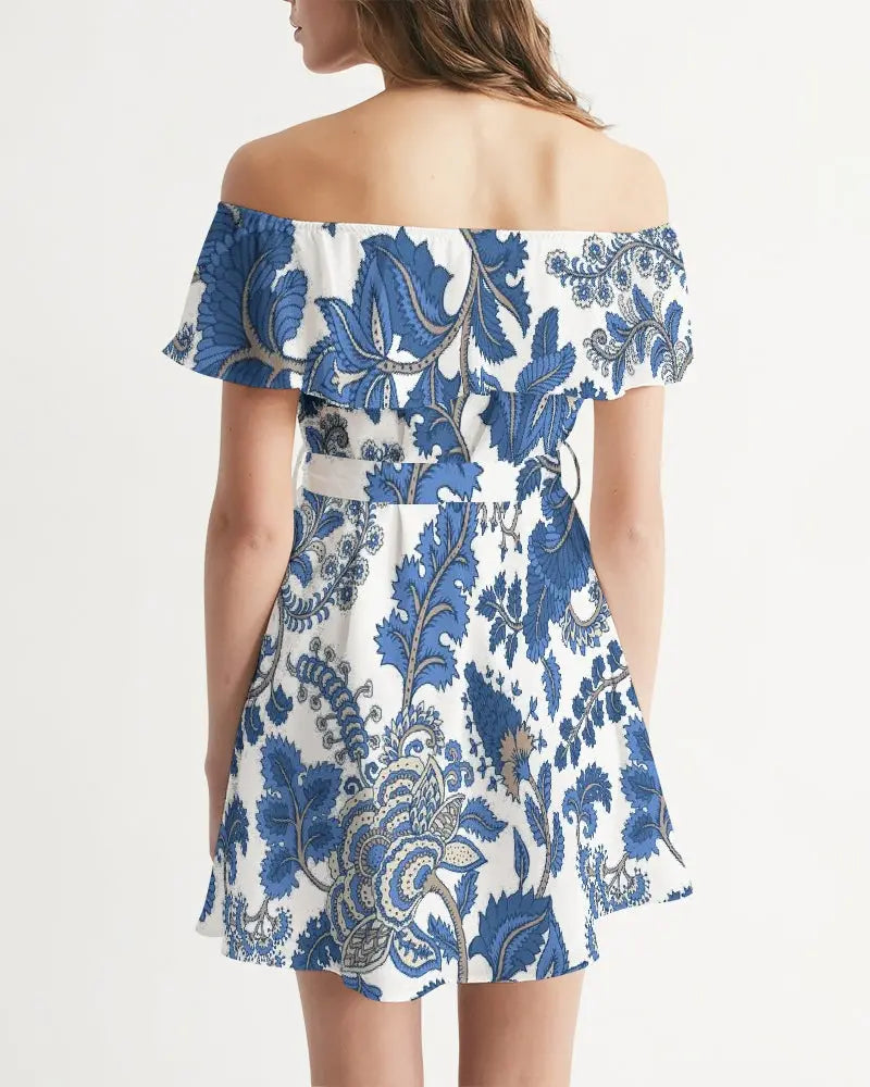Abito donna floreale Dettagli del prodotto Con una splendida scollatura arruffata, sembrerai senza sforzo nel nostro vestito da donna con spalle scoperte. Lo chiffon trasparente è decorato con dettagli smock, un orlo arruffato e completato da un dettaglio con cintura regolabile in vita. Tessuto leggero e fluido Corpo rilassato, vita definita